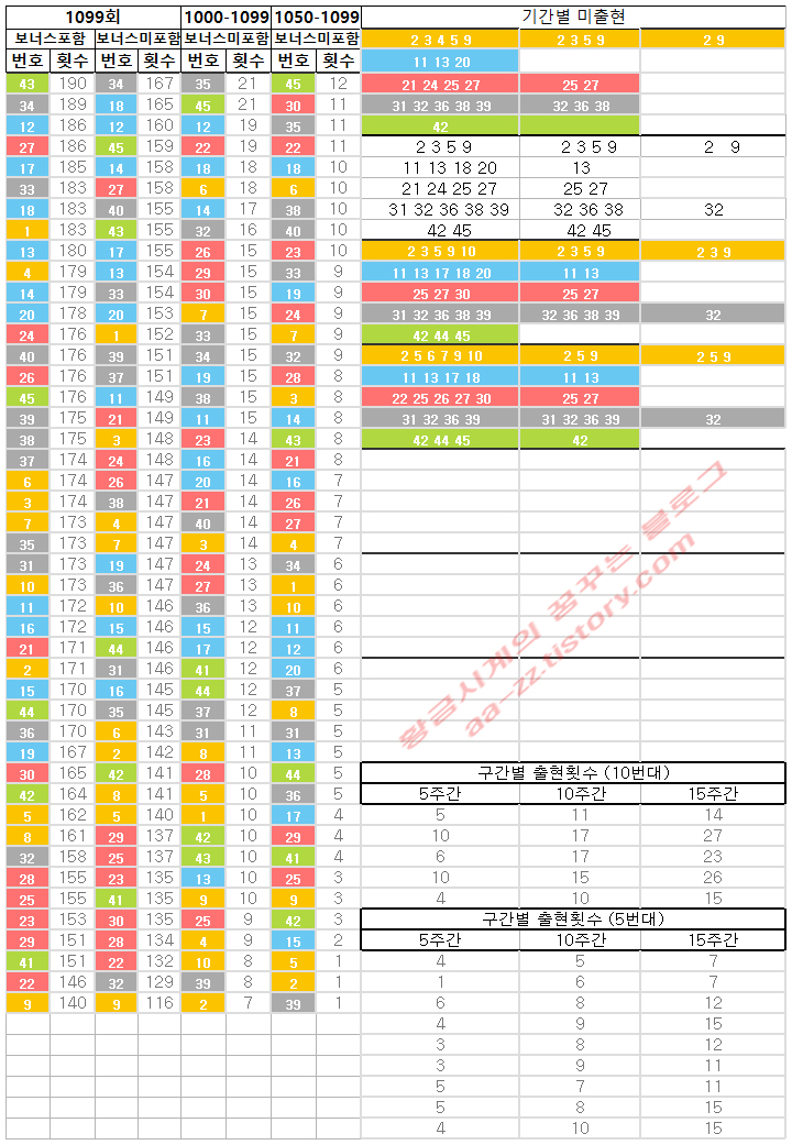 기간별 미출현 번호는